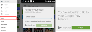 Tukarkan menjadi saldo playstore dengan cara Buka aplikasi Playstore dan masuk menu Reedem. Masukan Kode playstore yang kalian catat tadi, jika benar dalam mengisi maka saldo playstore kalian akan bertambah secara otomatis.